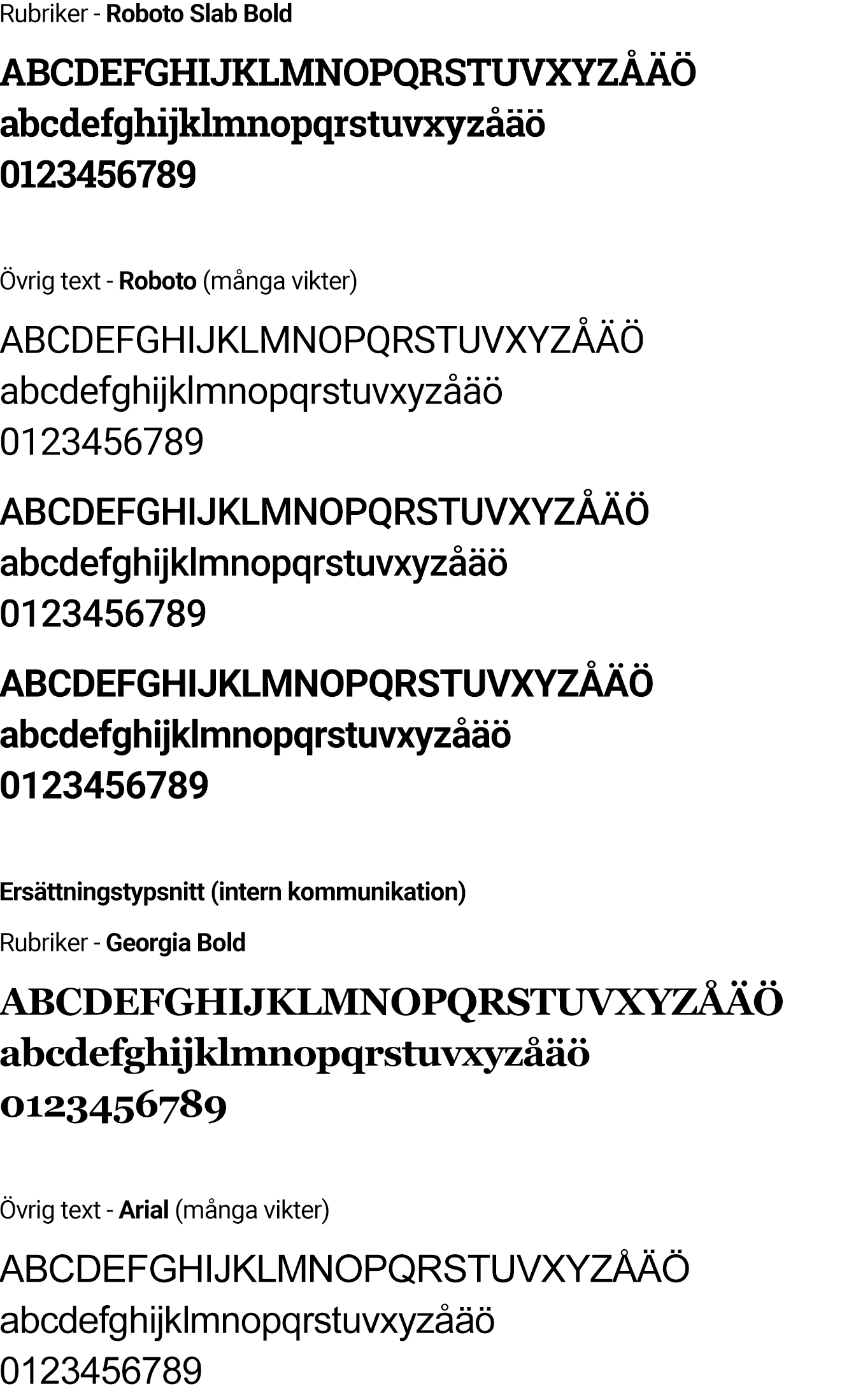 I intern kommunikation kan Georgia (rubriker) och Arial (övrig text) användas som ersättningstypsnitt.